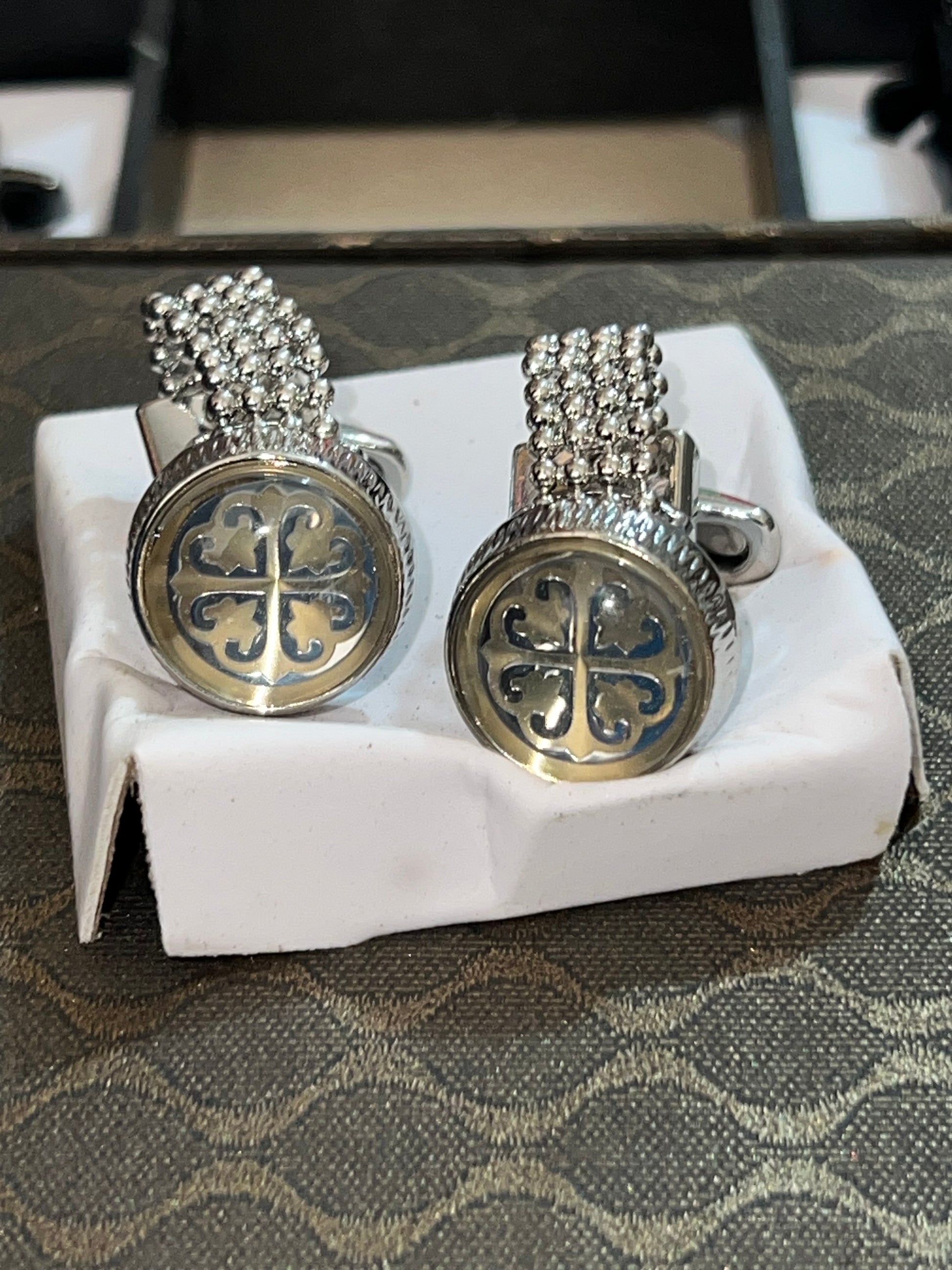Les boutons de manchette beige sur fond bleu allient élégance et sophistication. Leur design minimaliste s'intègre parfaitement à diverses tenues, offrant une touche de raffinement. Fabriqués avec des matériaux de qualité, ils garantissent durabilité et résistance, tout en ajoutant une note de distinction à votre style.