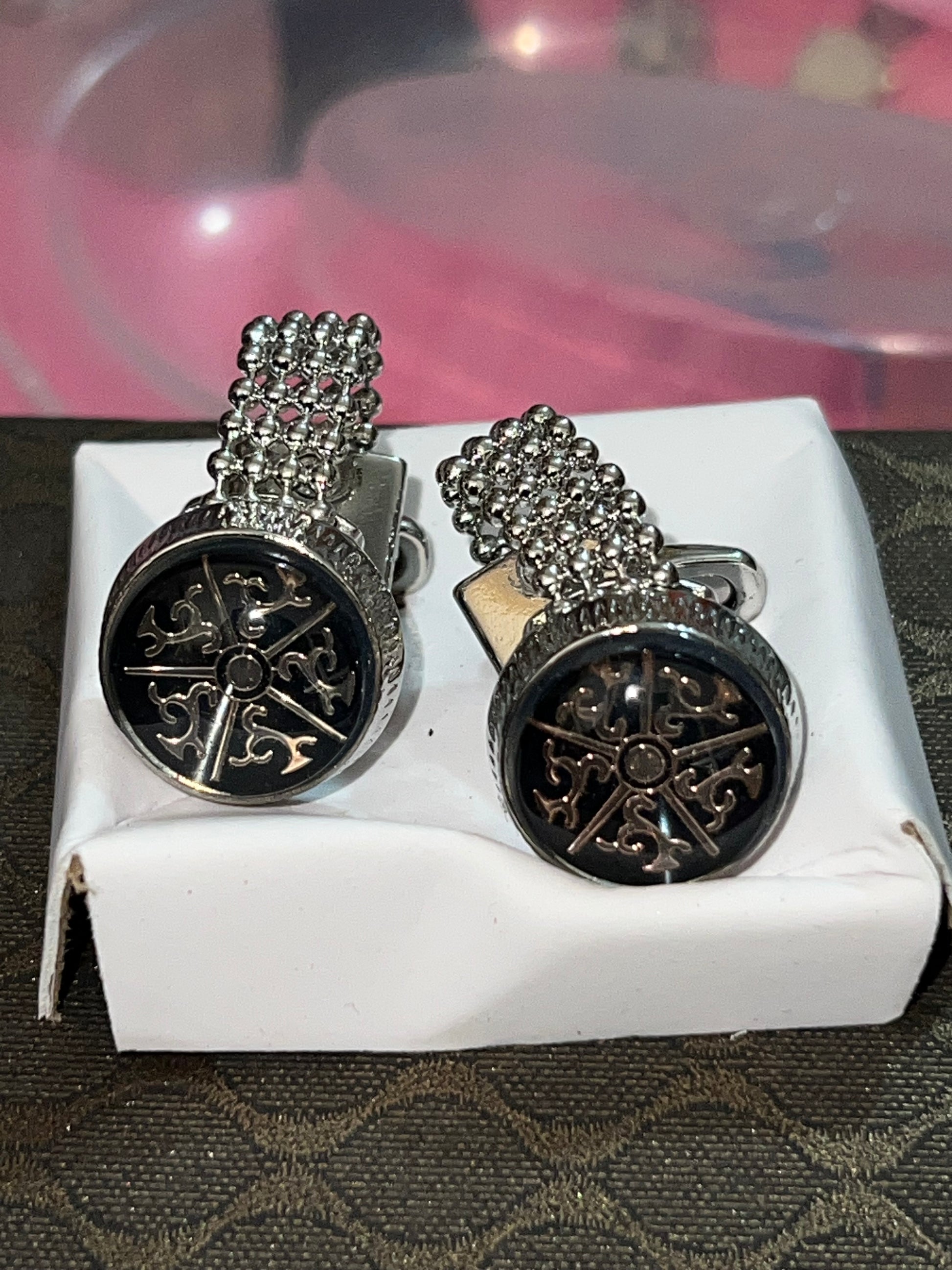 Les boutons de manchette Fond Noir-grisé allient élégance et modernité. Leur finition en noir-grisé offre un contraste subtil qui s'adapte à diverses tenues. Fabriqués avec des matériaux de haute qualité, ils sont conçus pour résister à l'épreuve du temps et ajouter une touche raffinée à votre ensemble.
